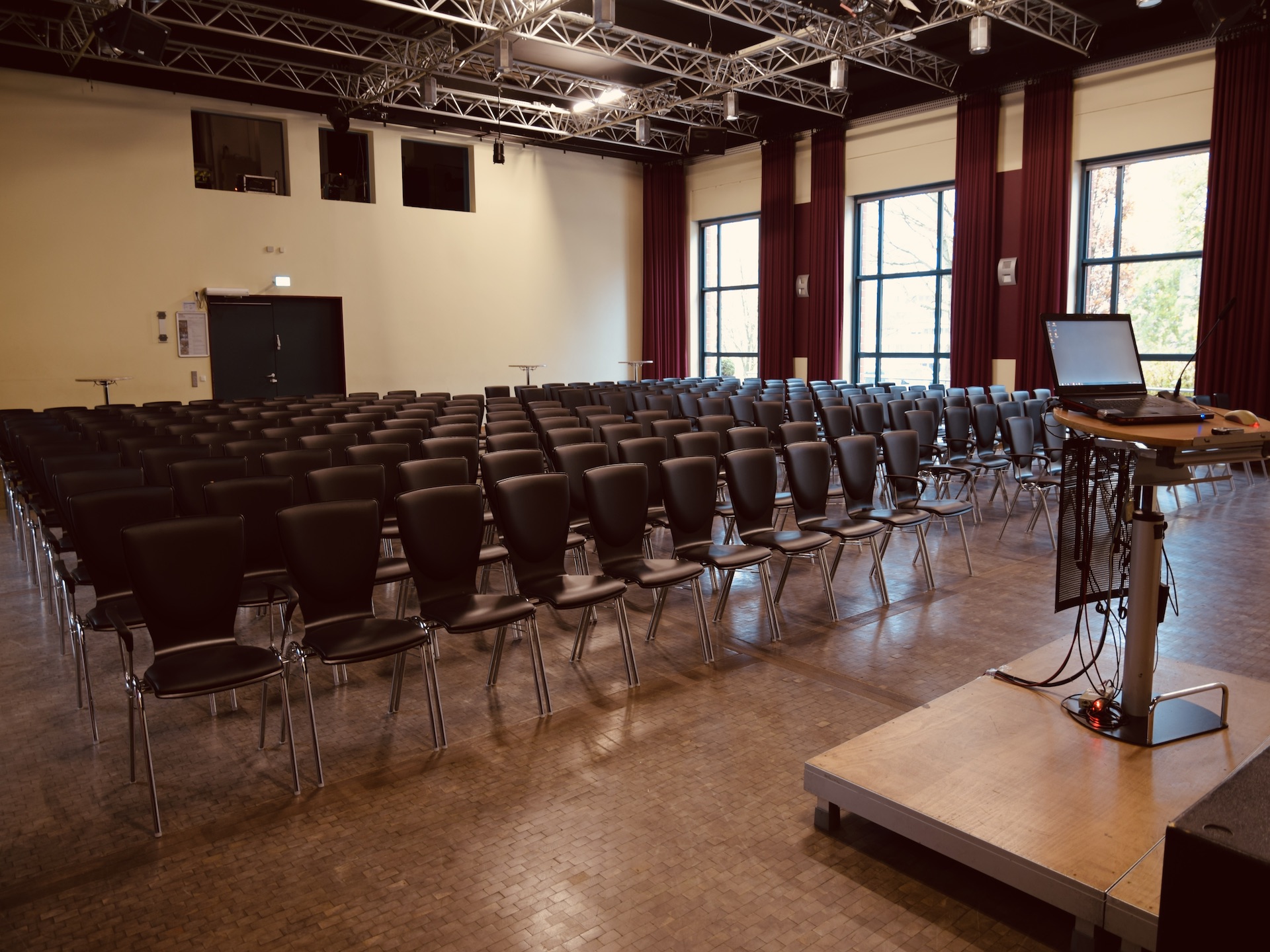 Wir richten das für Ihre Bedürfnisse passende Raumsetting ein und stellen die benötigte Tagungstechnik einschließlich der professionellen Betreuung durch unsere Fachkräfte für Veranstaltungstechnik zur Verfügung.